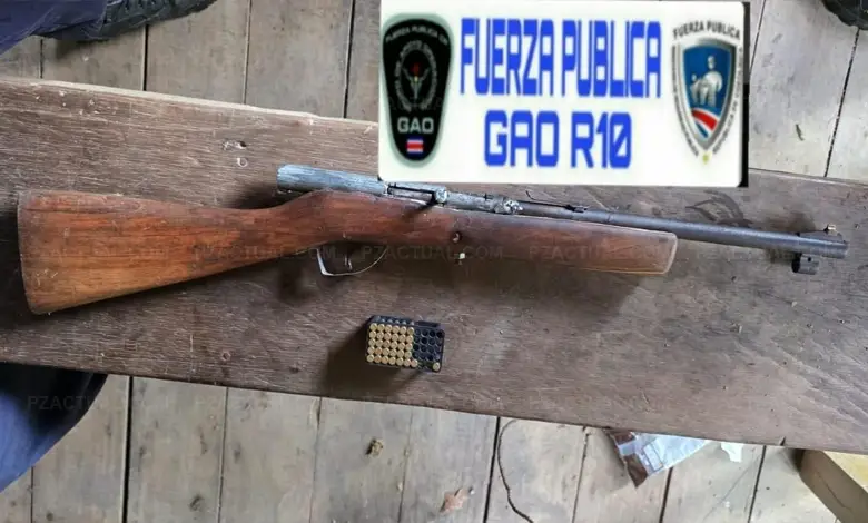 Como parte de acciones para reforzar la seguridad, la Fuerza Pública decomisó armas artesanales en la Zona Sur de Costa Rica. Los operativos se realizaron en el cantón de Puerto Jiménez, donde oficiales lograron incautar una pistola hechiza y un rifle, además de municiones, en dos intervenciones distintas.