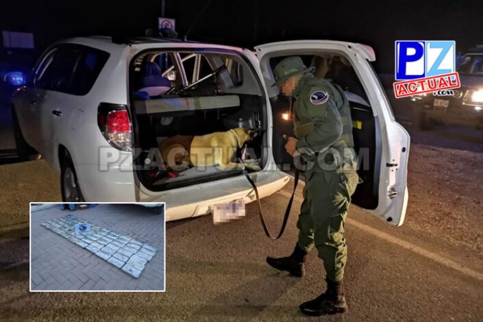 Los oficiales, con el apoyo del can Koldo, ubicaron 60 paquetes de droga en un doble forro debajo de la llanta de repuesto que se ubica en la cajuela.